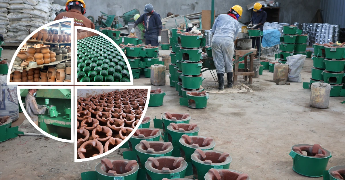 Before the intervention, the ceramic cookstove sector grappled with fragmented production systems, low technological capacity, and significant environmental and occupational risks. Clay and pottery sand mining relied heavily on manual, unmechanized extraction, exposing miners—mostly women and men working at low wages—to hazards such as underground water seepage, landslides, and abandoned pits that become breeding grounds for disease vectors . Production inefficiencies were widespread due to inconsistent clay–sand mixing, limited pre-processing, variable kiln designs, inadequate PPE use, and lack of standardized manufacturing protocols. These challenges led to high breakage rates, low thermal efficiency (26–35%), and short product lifespans. The absence of marketing structures, carbon market readiness, and cooperative organization further weakened the sector’s competitiveness. Addressing these gaps was critical not only for improving product quality but also for advancing environmental sustainability, supporting local livelihoods, and enabling broader adoption of clean cooking technologies in Kenya.
