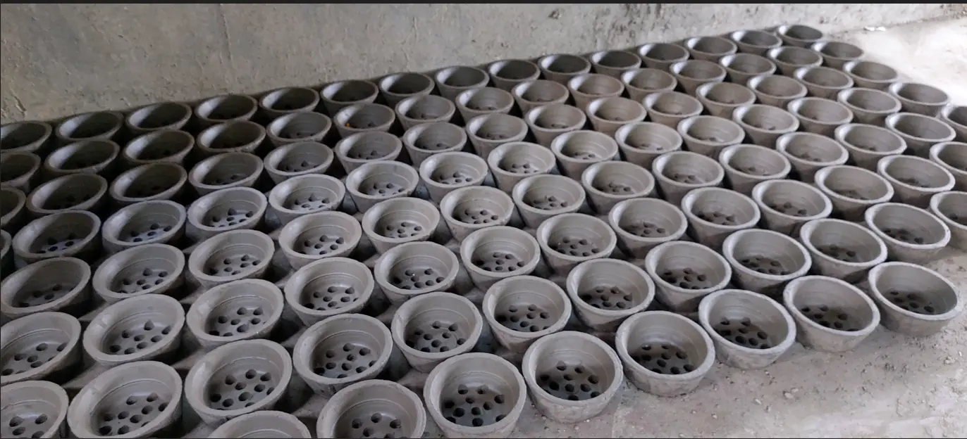 Photo showing the curing of cook stove liners a head of kiln firing